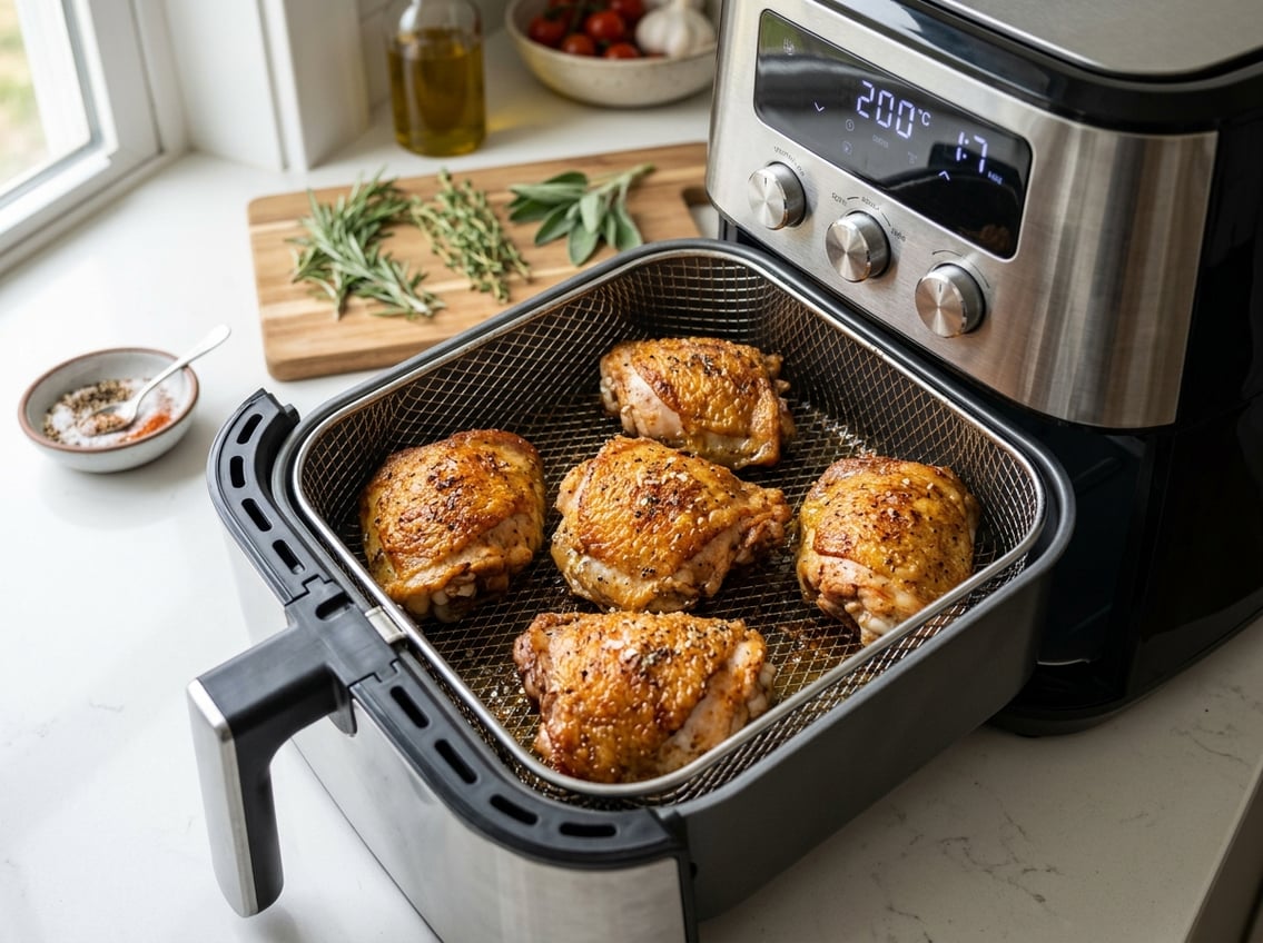 You can cook chicken thighs in an air fryer and get juicy meat with crisped skin quickly and reliably. Using the right thigh type, simple prep, and proper temperature lets you turn this appliance into a fast weeknight dinner machine that delivers consistent results.