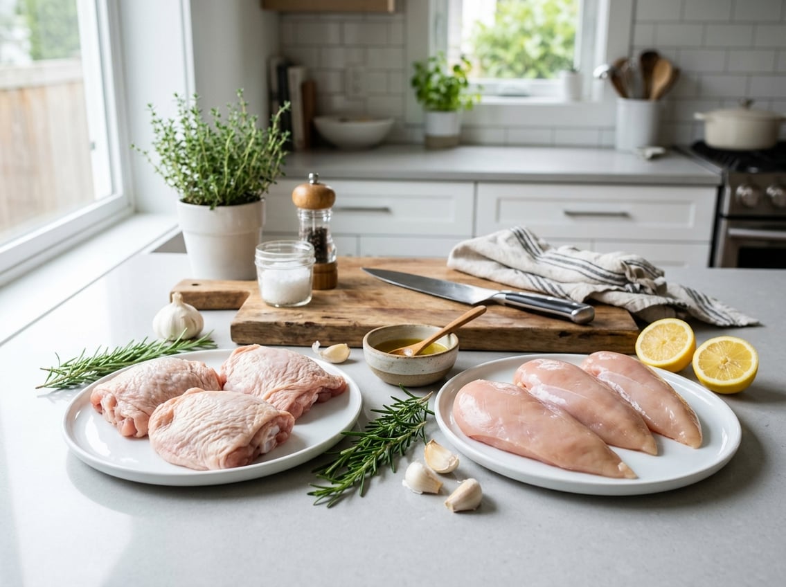 When you swap thighs for breasts, adjust quantity, cooking time, and seasoning to match the darker meat’s weight, fat level, and flavor.