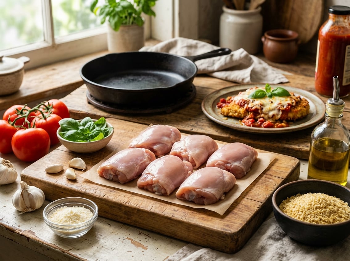 You can use chicken thighs for Chicken Parmesan, and they often deliver juicier, more flavorful results than breasts. Boneless, well-pounded thighs give you a tender, succulent chicken thigh Parmesan with a crisp breading that holds up under sauce and cheese.