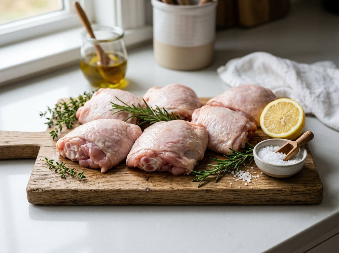 For pan sauces and quick dinners, brown the thighs first. Deglaze with stock or wine, then finish cooking in the sauce for 8–12 minutes.