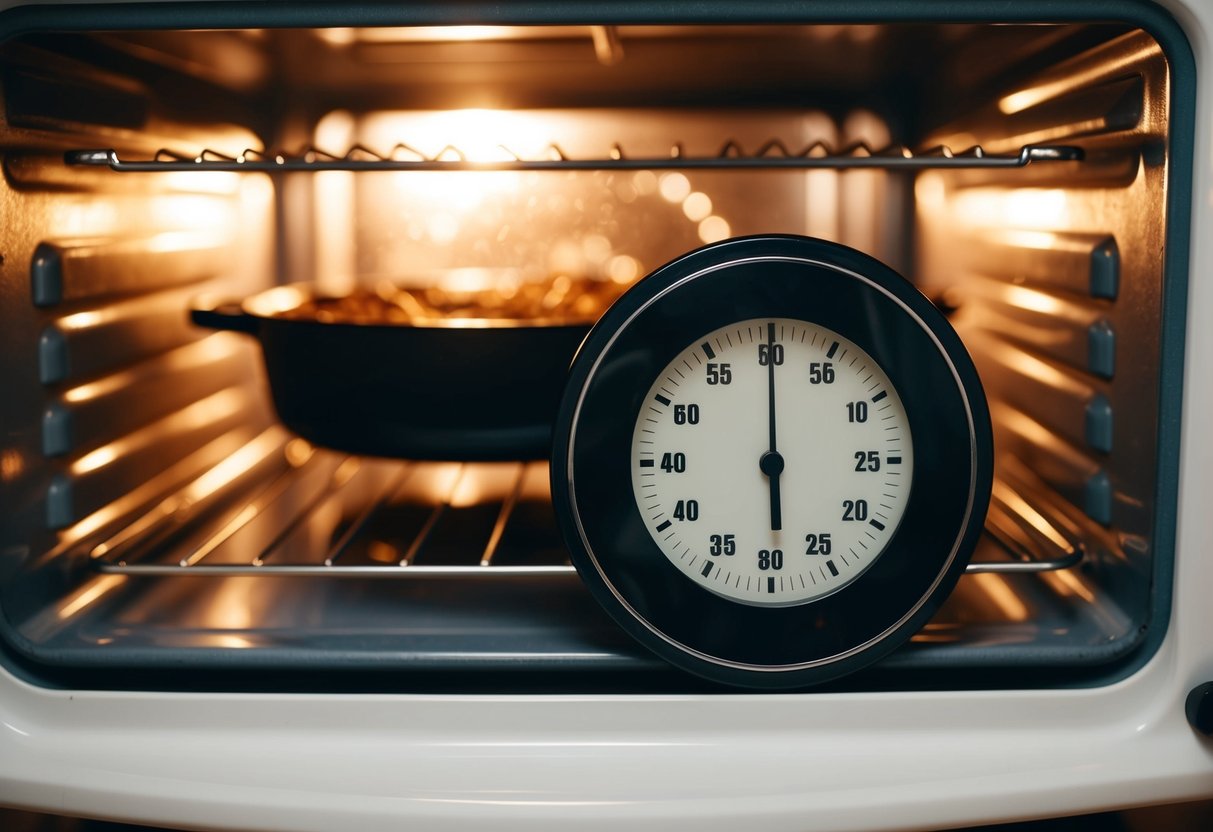 Try not to open the oven door too often. Every time you do, heat escapes and things take longer.