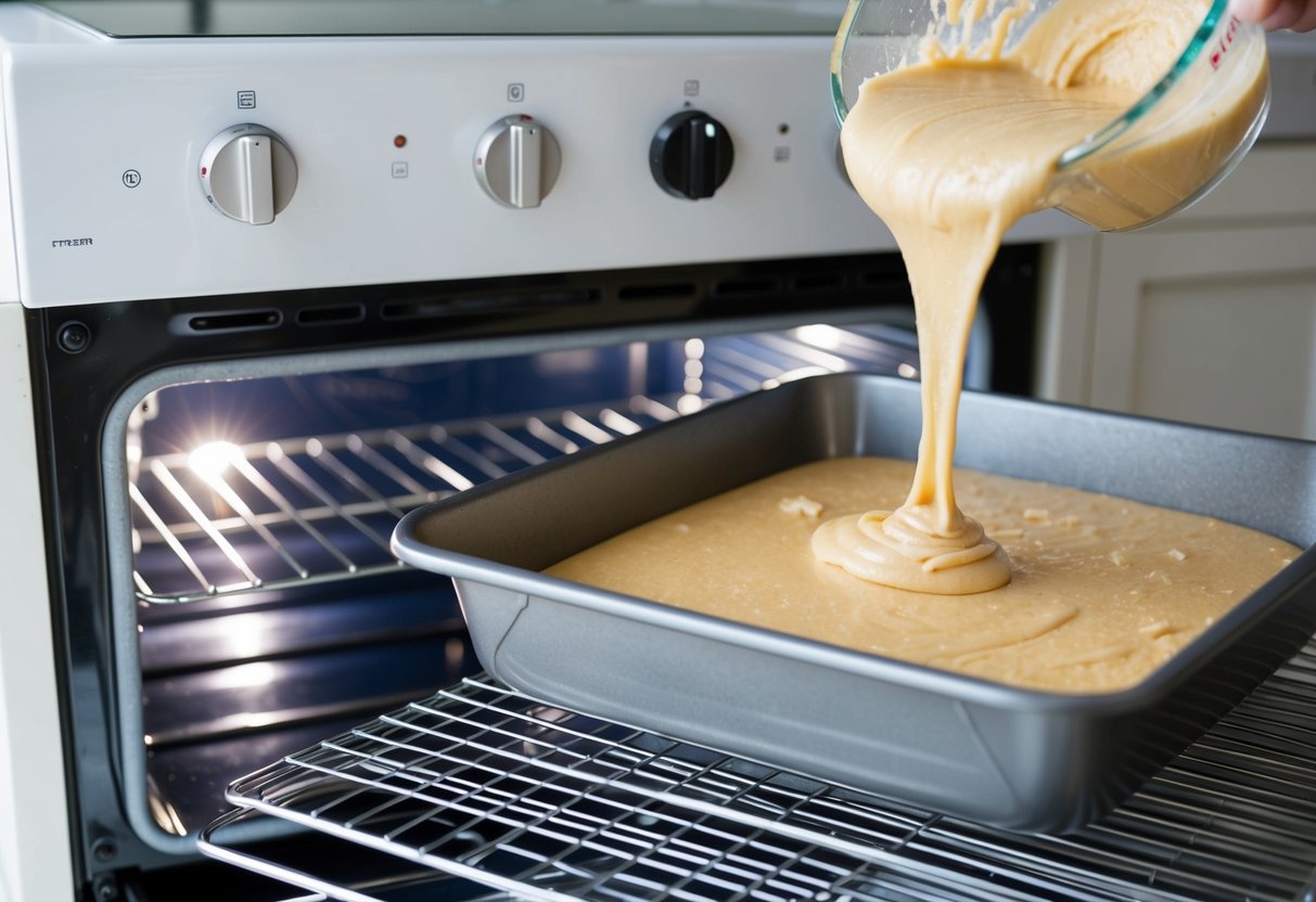 Pour the batter evenly into your pan. Use a spatula and smooth out the top.