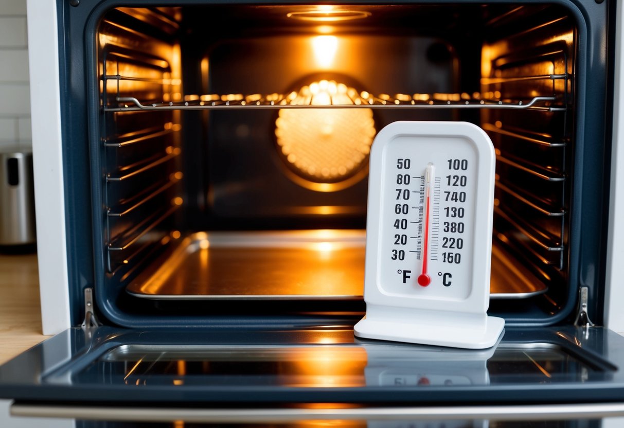 An oven thermometer is a handy little gadget for checking your oven’s real temperature. Just place it inside and set the oven to something like 350°F.