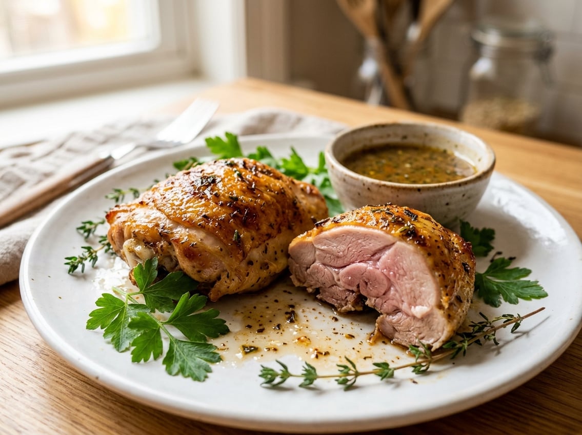 Let the thighs rest uncovered for 5–10 minutes after cooking. This allows the juices to redistribute and carryover cooking to finish.