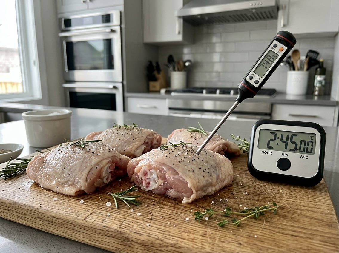 Thighs need more cooking time than lean cuts to become safe, juicy, and flavorful, especially if they’re bone-in or skin-on.